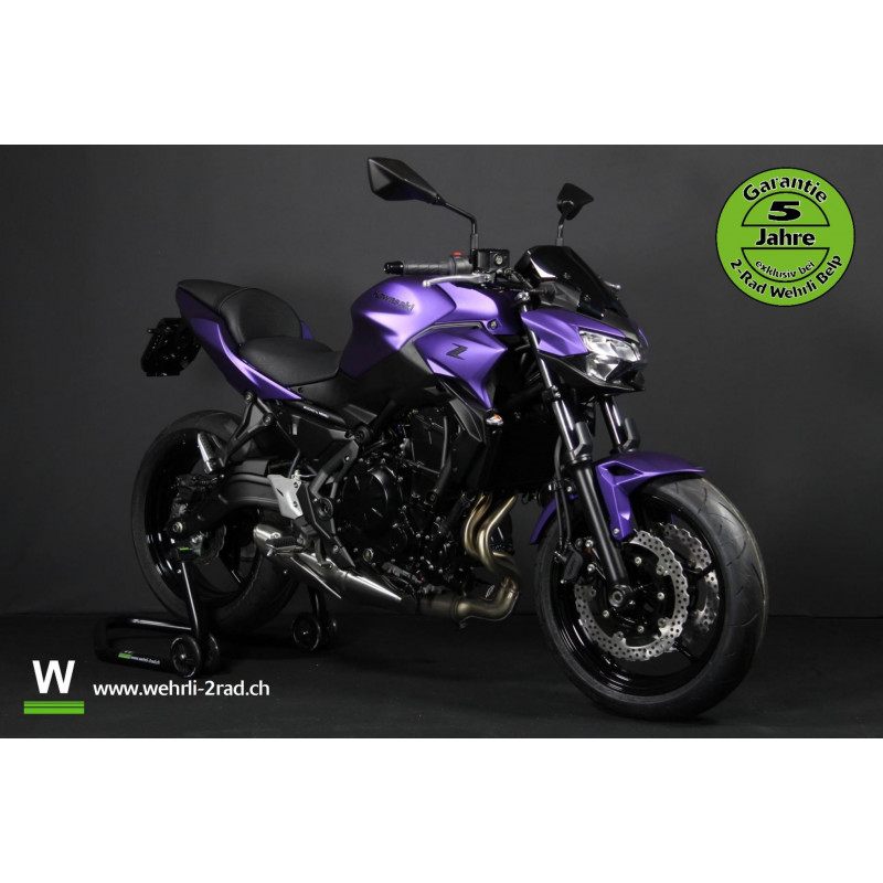 Mit Traktionskontrolle (neu), kompletter LED Beleuchtung (neu) und dem TFT-Farbdisplay mit Smartphone-Konnektivität bietet die Z650 aktuellste Technik. Die Z650 belebt Ihre Sinne und begeistert auf jeder Fahrt. Auffallendes Sugomi Styling in einem leichten und kompakten Paket und Fahrspass pur mit ihrem 650cc Reihenzweizylindermotor. Alles Merkmale, welche die neue Z650 auf einen neuen Level heben.
