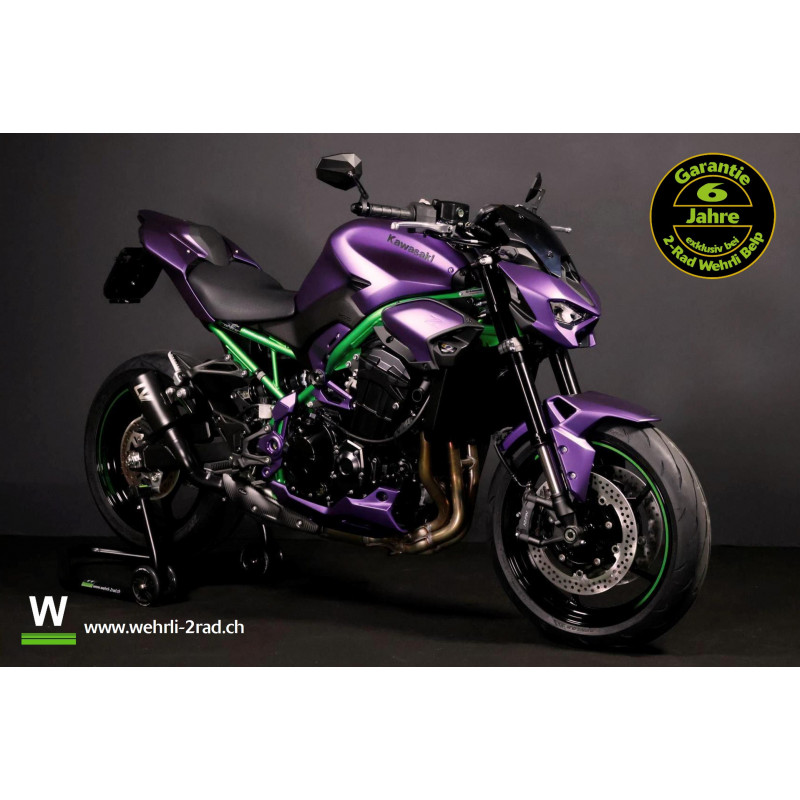 Diese Z900 ist mit unserem Level 3 Performancepaket (Kurzheck, Ledblinker, Lenkerendspiegel und Leovince Endschalldämpfer) und einer Sonderlackierung ausgestattet.