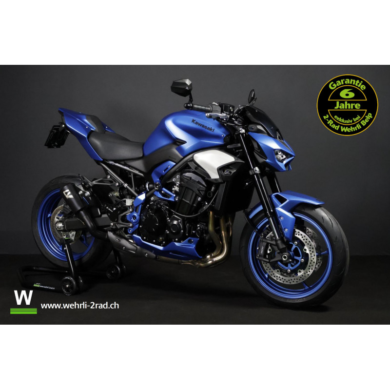 Diese Z900 ist mit unserem Level 3 Performancepaket (Kurzheck, Ledblinker, Lenkerendspiegel und Leovince Endschalldämpfer) und einer Sonderlackierung ausgestattet.