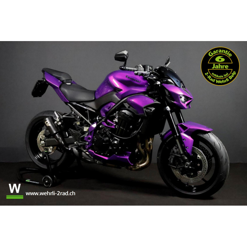 Diese Z900 ist mit unserem Level 3 Performancepaket (Kurzheck, Ledblinker, Lenkerendspiegel und Leovince Endschalldämpfer) und einer Sonderlackierung ausgestattet.