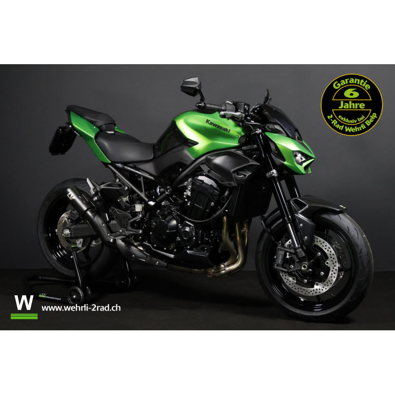 Diese Z900 ist mit unserem Level 3 Performancepaket (Kurzheck, Ledblinker, Lenkerendspiegel und Leovince Endschalldämpfer) und einer Sonderlackierung ausgestattet.